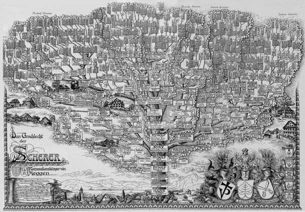 Unser Stammbaum basiert auf den genealogischen Forschungen von Jean Scherer-Sievers.